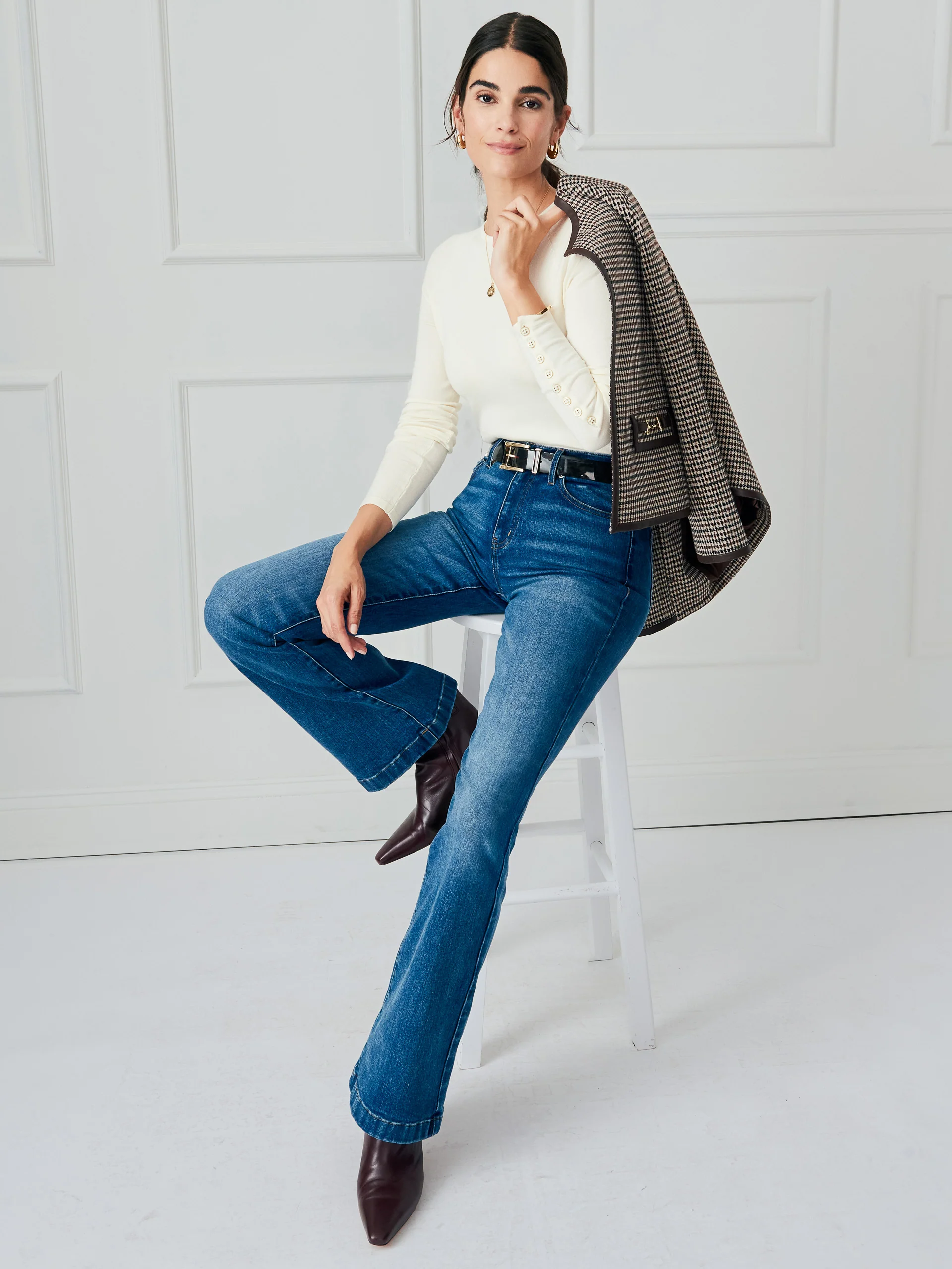 As easy as a tee, our raglan sleeve sweater comes in season spanning stretch knit with tiny golden buttons like built-in jewelry.