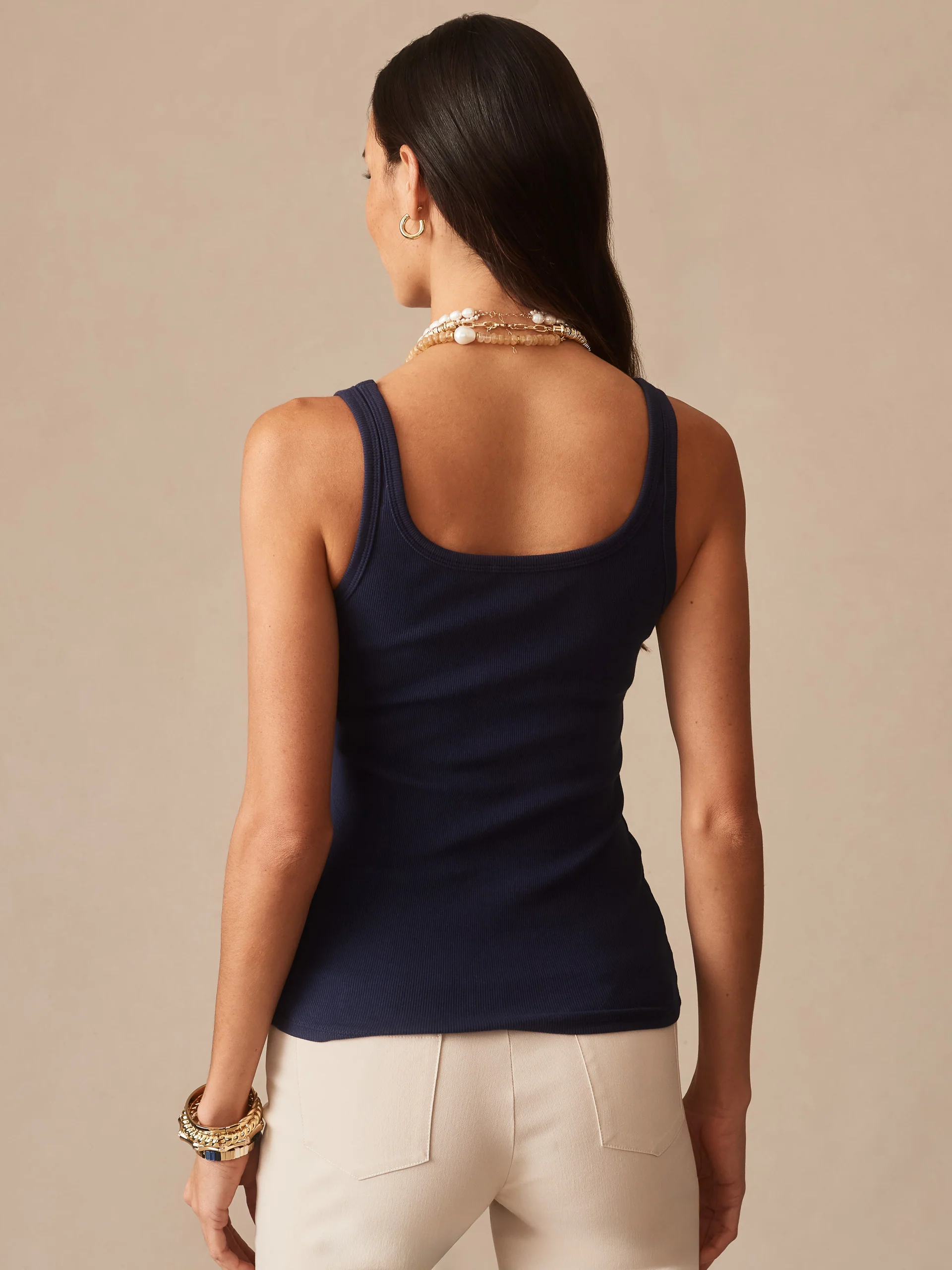 A foundation piece to layer or simply wear solo, the Robin tank features a scoop neckline and ribbed body for a close fit.